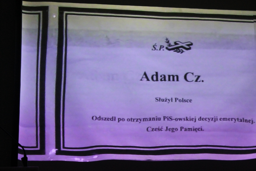 Po obejrzeniu filmu,  zaproszony na spotkanie    mjr Stanisław Kuśmierski prezes Oddziału Powiatowego Związku Rezerwistów i Weteranów WP  w Radomiu, nawiązując  do przestrogi  redaktora seniora Mariana  Turskiego wypowiedzianej  na spotkaniu w  Muzeum Zagłady  w Oświęcimiu   przypomniał śmierć swego dziadka podczas  trzymiesięcznego  pobytu   w tymże obozie  w Oświęcimiu. Jego  hitlerowskie władze poinformowały rodzinę, że zmarł na… zapalenie płuc. Poseł Rozenek nawiązał z kolei  do rozstrzelania  w 1946 roku  w lesie pod Skaryszewem  przez faworyzowanych  obecnie  prze PiS     Żołnierzy Wyklętych  jadącego do Warszawy wnuka zesłańca syberyjskiego majora WP  Alfreda Wnukowskiego, jego ciężarnej  żony Ireny i kilku towarzyszących im żołnierzy .  W dyskusji  fakty krzywd i  obrażania ludzi  ujawnili  też członkowie Federacji Służb Mundurowych z terenu Radomia i okolic  oraz młodzi ludzie  w tym uczniowie, apelując do  partii lewicowych o  konsekwentne przeciwstawianie się  faktom bezprawia  w wydaniu polityków rządzących obecnie Polską.